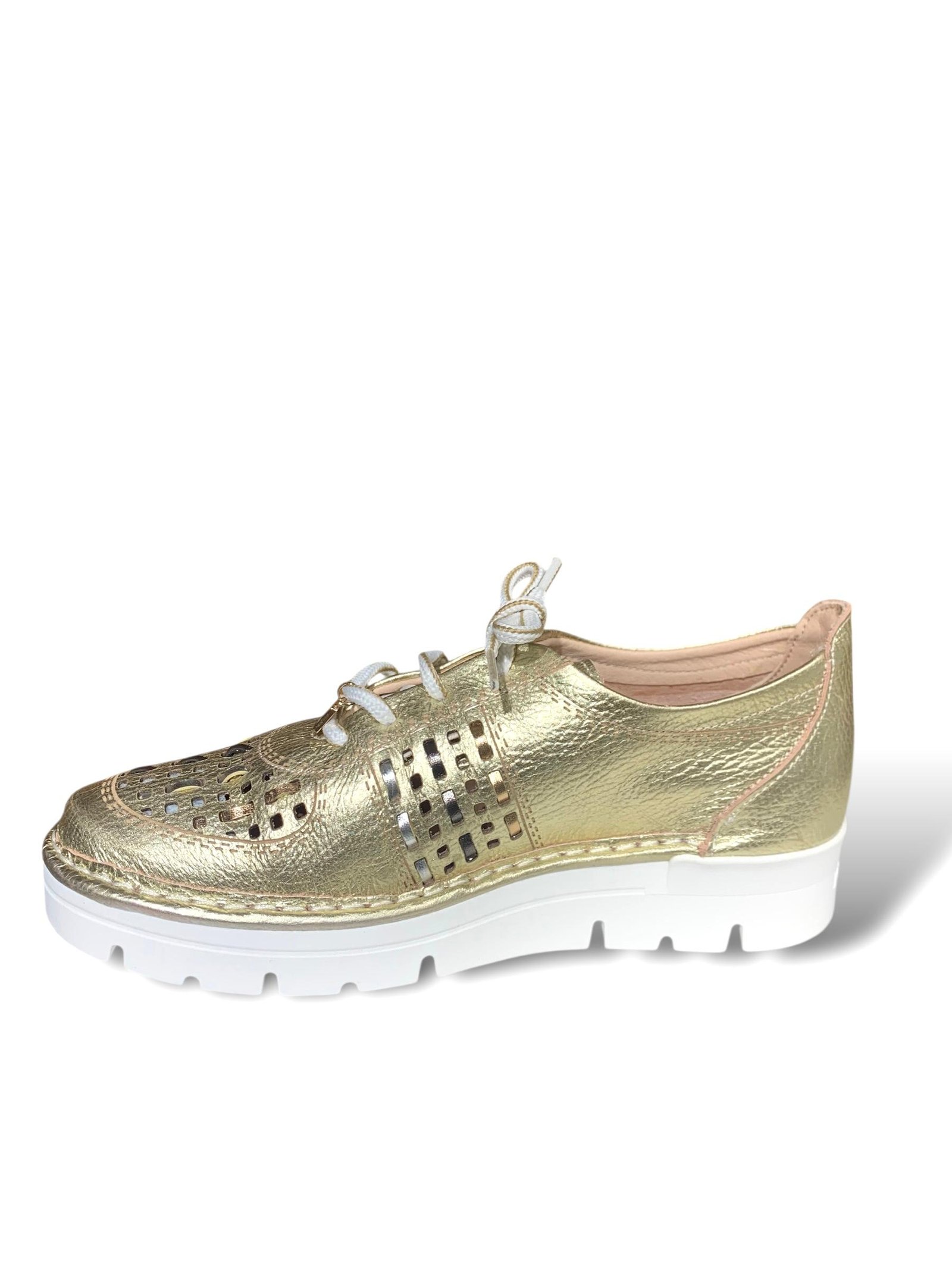 ZAPATILLA DORADA CALADA DE CUERO – JOSE SAENZ